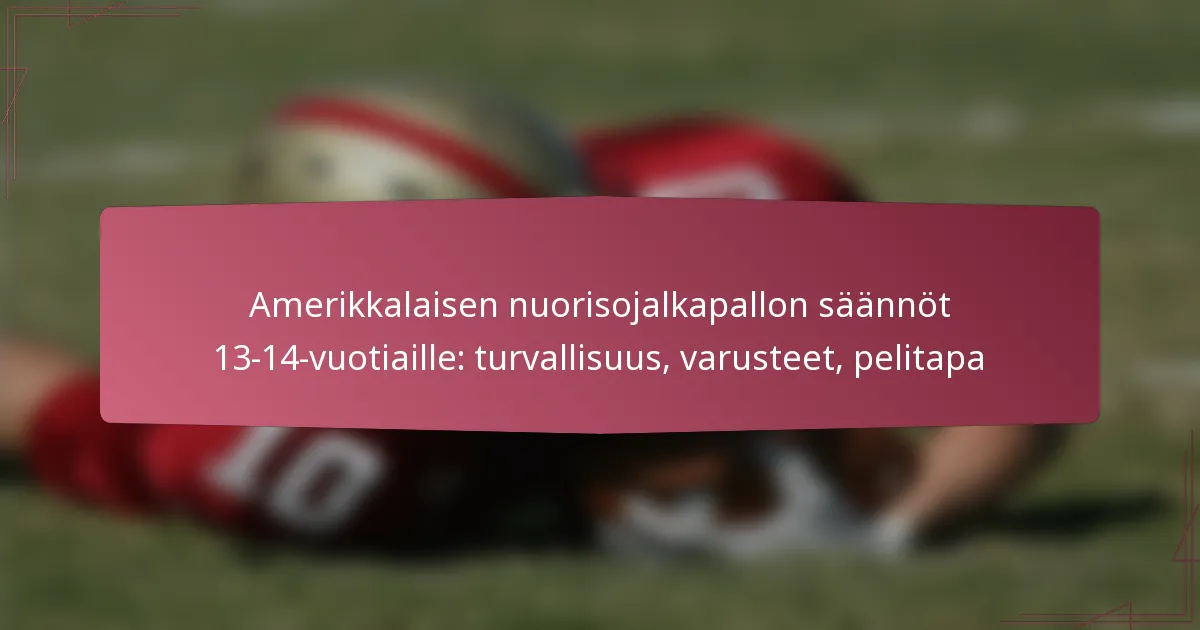 13-14-vuotiaiden säännöt amerikkalaisessa nuorisojalkapallossa eroavat merkittävästi nuoremmista ja vanhemmista ikäryhmistä, keskittyen turvallisuuteen, pelitapaan ja varustestandardeihin. Nämä säädökset pyrkivät tasapainottamaan kilpailullista peliä nuorten fyysisten ja kehityksellisten tarpeiden kanssa.