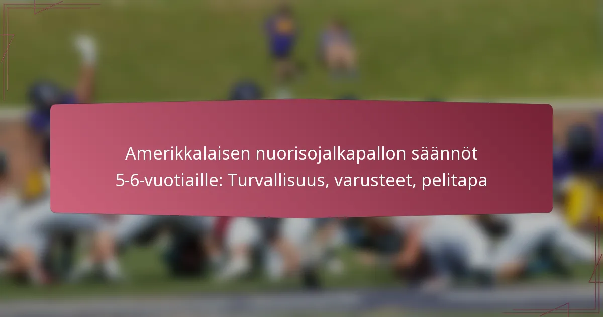 Peruspelisäännöt 7-8-vuotiaille amerikkalaisessa nuorten jalkapallossa keskittyvät turvallisuuteen, taitojen kehittämiseen ja iloon. Nämä säännöt on suunniteltu luomaan rakenteellinen ympäristö, jossa nuoret pelaajat voivat oppia peliä samalla kun minimoidaan kontaktisportteihin liittyvät riskit.