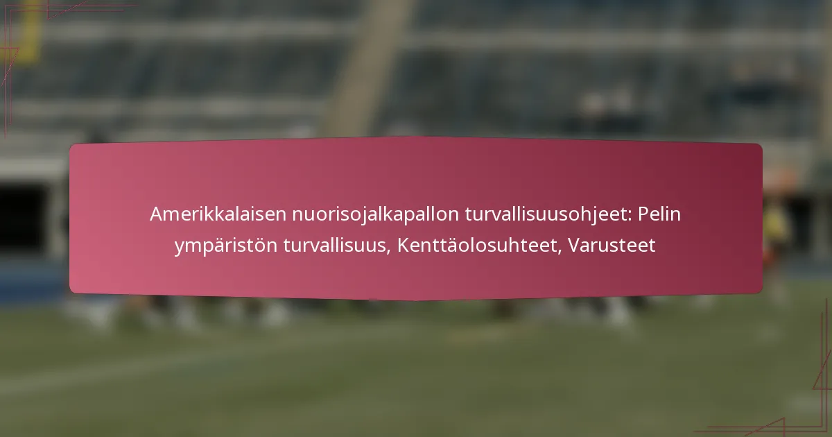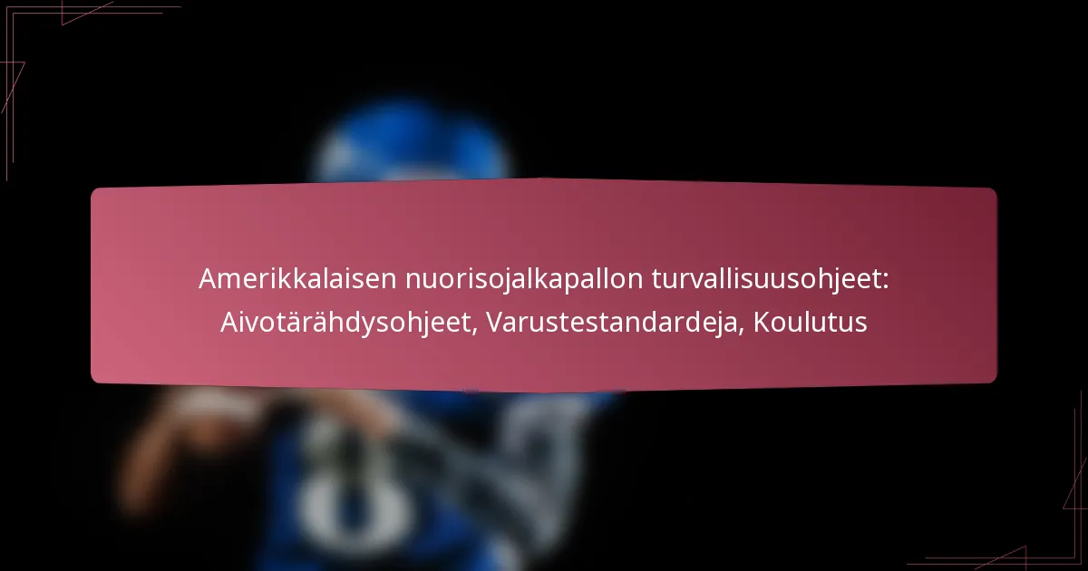 Nuorten jalkapalloilijoiden turvallisuuden varmistaminen on ensisijaisen tärkeää, ja keskeiset ohjeet keskittyvät aivotärähdysohjeisiin, varusteiden standardeihin ja koulutusohjelmiin. Nämä protokollat korostavat oireiden tunnistamisen ja turvallisten takaisin peliin -käytäntöjen toteuttamisen merkitystä, kun taas varusteiden standardit varmistavat, että kaikki suojavarusteet täyttävät turvallisuusmääräykset. Lisäksi kattava koulutus valmentajille ja pelaajille on välttämätöntä turvallisten tekniikoiden edistämiseksi ja loukkaantumisriskien minimoimiseksi kauden aikana.